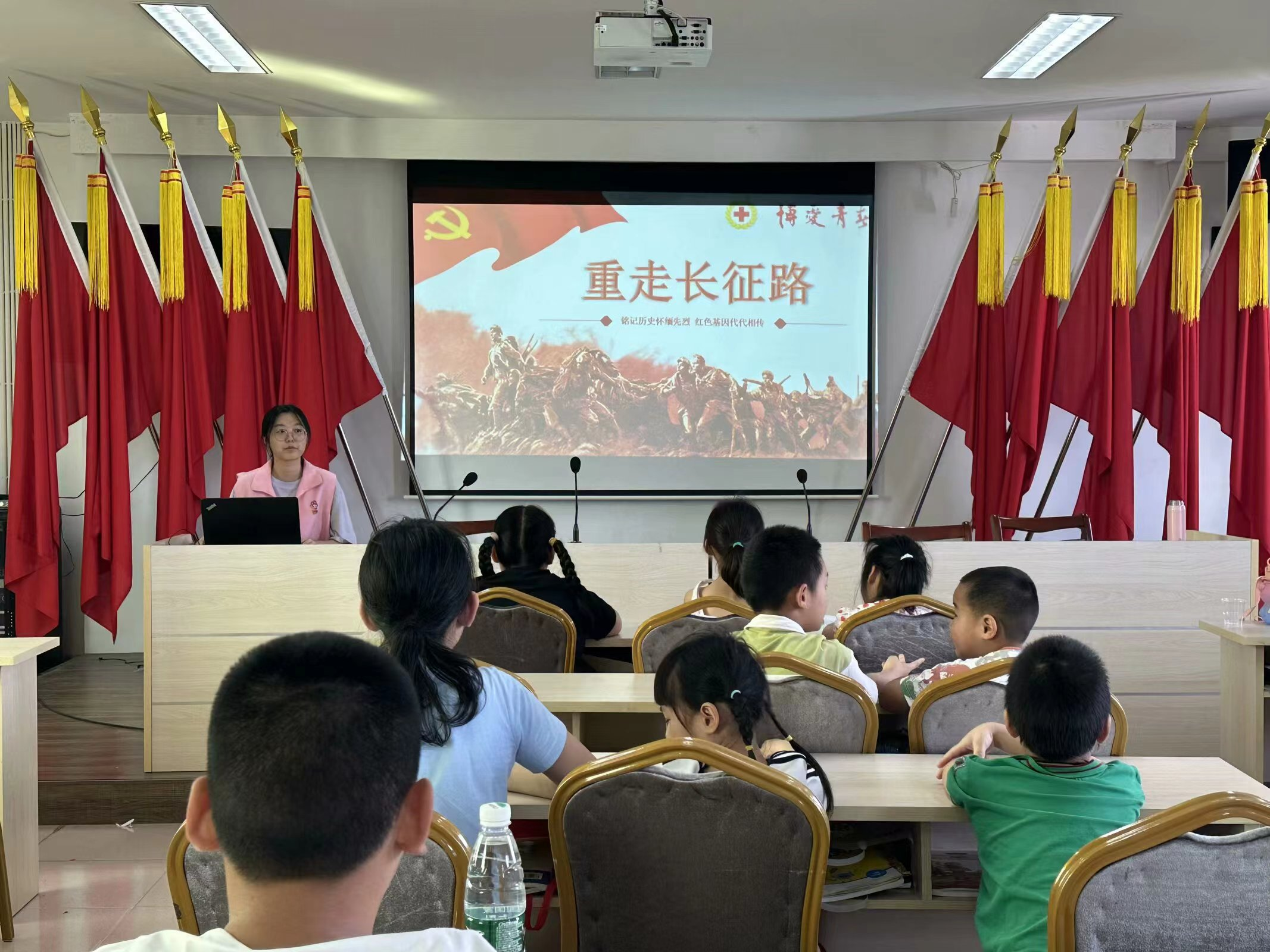 7月22日,南京农业大学博爱青春志愿服务队邀请退役士官陈强同志、杨军同志,在高淳区漆桥街道漆桥村新时代文明实践站,为孩子们开展了爱国教育与国防主题讲座。