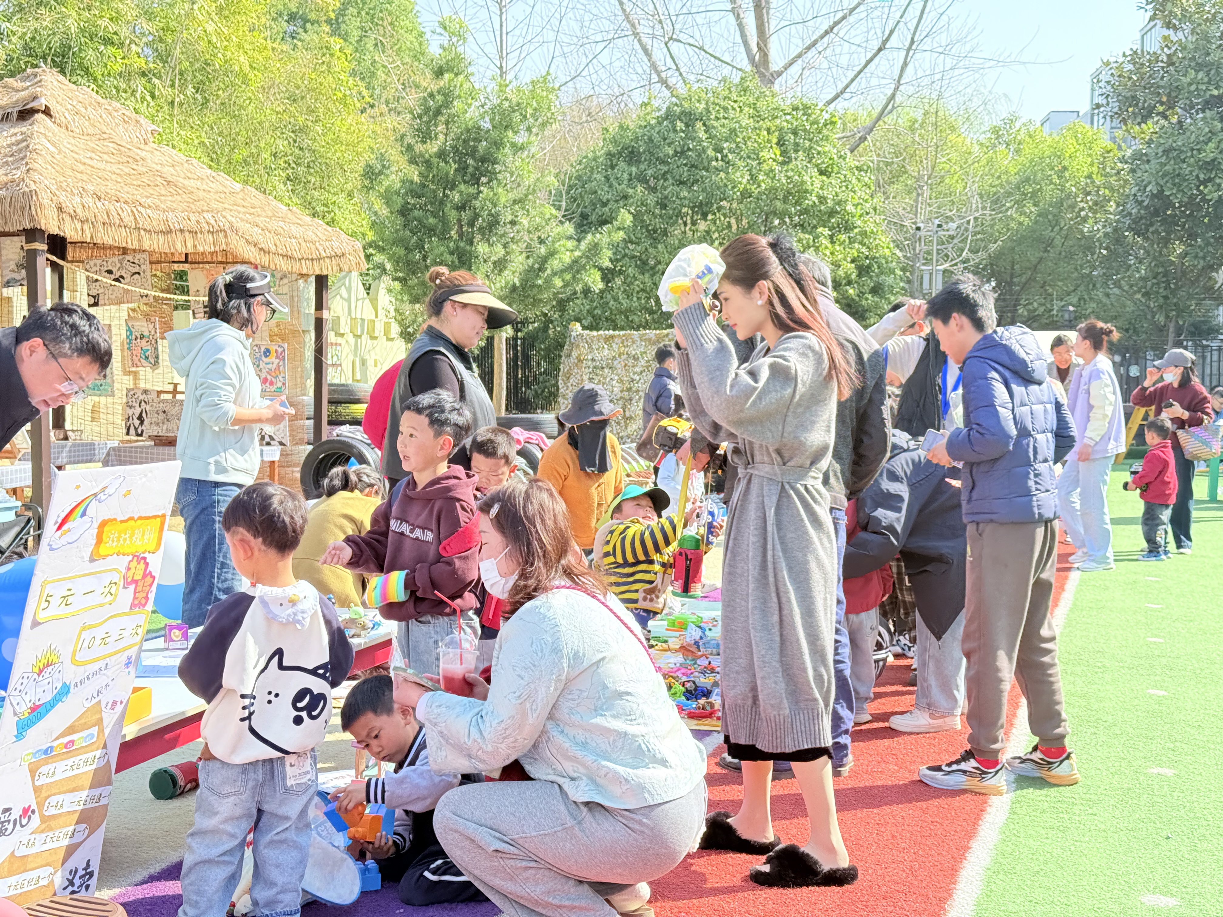 活动当天,幼儿园的每个角落都弥漫着“爱”的芬芳。摊位上摆放着孩子们从家里带来的物品,从可爱的毛绒玩偶到各式各样的玩具车,从色彩斑斓的绘本图书到实用的文具,还有五彩缤纷的气球、活泼的小金鱼等等。这些平日里或许被遗忘的物品,在今天被赋予了新的意义——它们将成为爱的使者,承载着孩子们的心意,为需要帮助的人带去希望。整场义卖活动共筹得善款4206元。