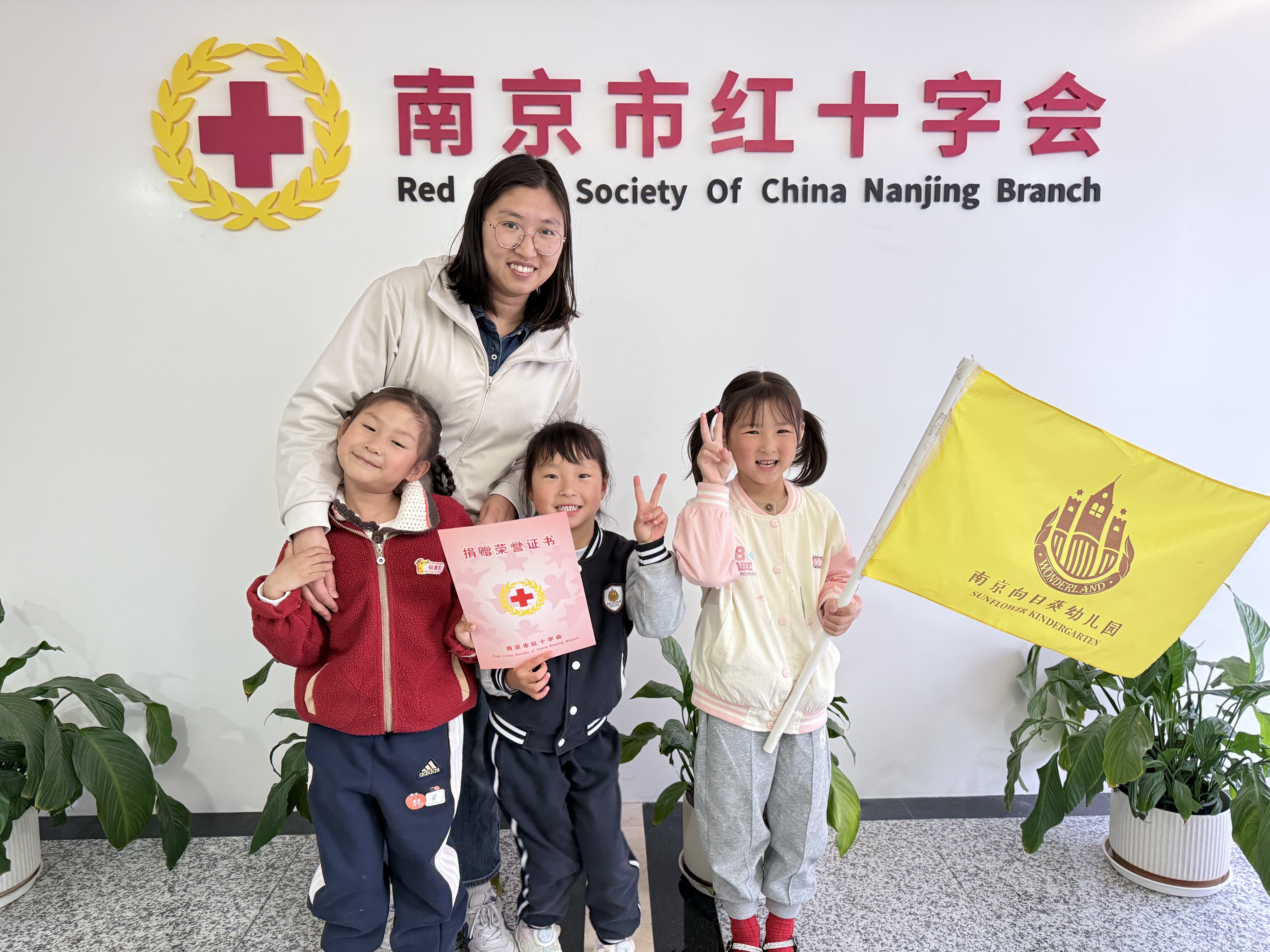 3月27日下午,幼儿园派出老师、家长代表和孩子代表来到南京市红十字会,将义卖所得善款全部捐给南京市红十字青少年发展金。