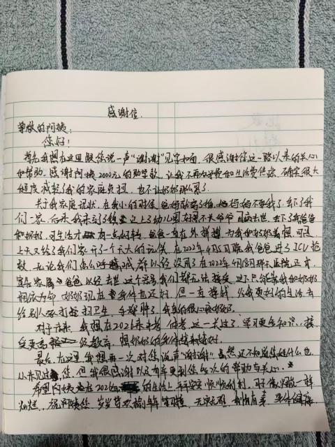 近日,资助款项已顺利转交到孩子手中。女孩在信中写道:“希望资助人阿姨在新的一年平平安安、顺顺利利、无灾无难。”男孩则在信中承诺:“我会在校听老师的教育,在家听家长的话,开发大脑,不辜负你们的关心。”