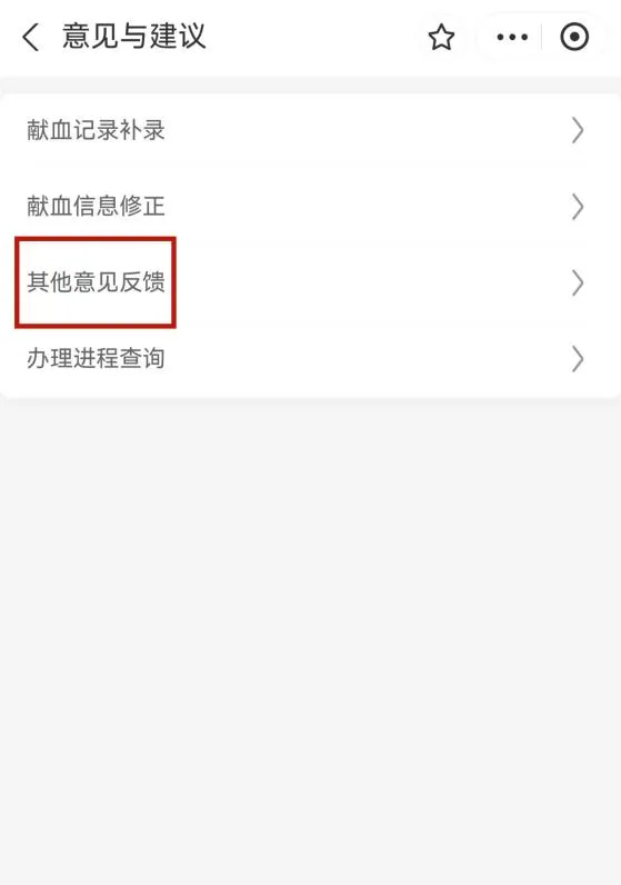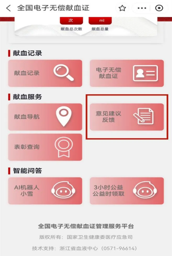 第二步:点击“献血服务”中的“意见建议反馈”。