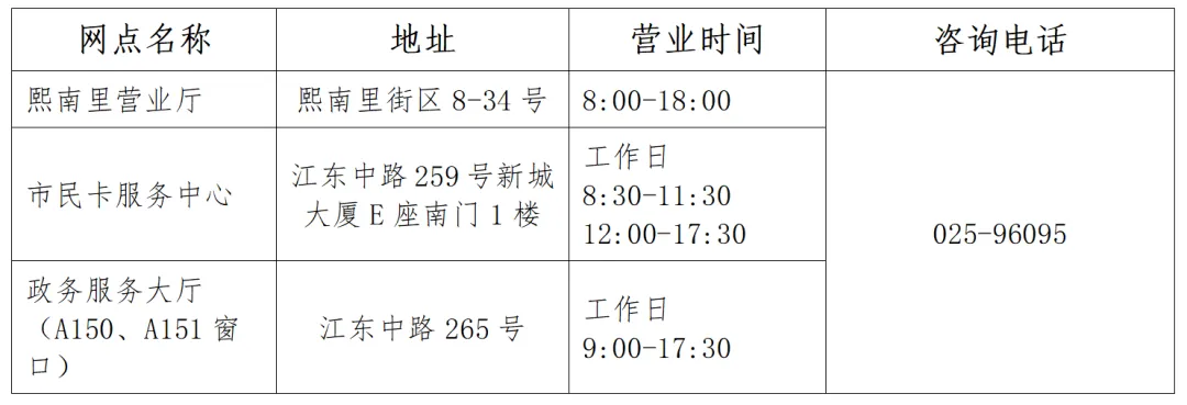 南京市市民卡公司营业网点