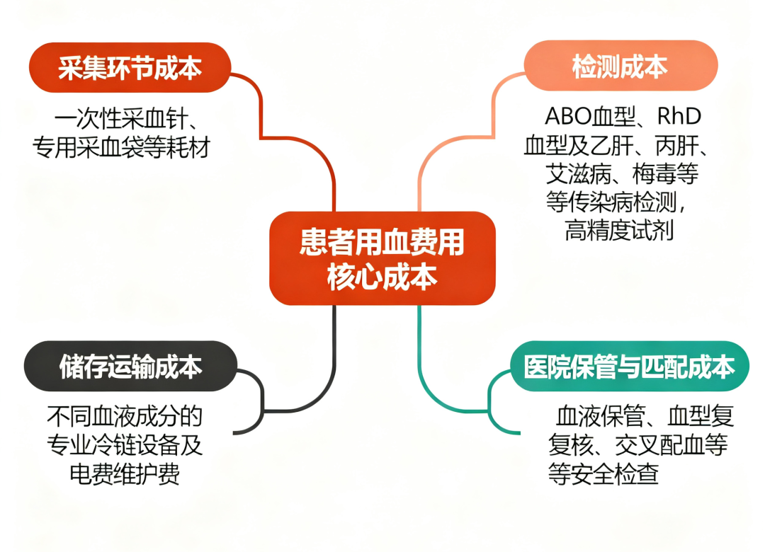 患者支付的费用,主要包括几大核心成本:一是采集环节的一次性采血针、专用采血袋等耗材费用;二是检测成本,每袋血液需经过ABO血型、RhD血型检测,以及乙肝、丙肝、艾滋病、梅毒等项目的检测费用,高精度试剂价格不菲;三是储存运输成本,红细胞类(除冰冻红细胞)需2-6℃冷藏保存,血浆类需低于零下18℃保存,血小板类需22-24℃恒温振荡保存,冷链设备的电费和维护费是重要开支;四是医院的保管费和匹配费,用于血液储存及血型复核、交叉配血等安全检查。