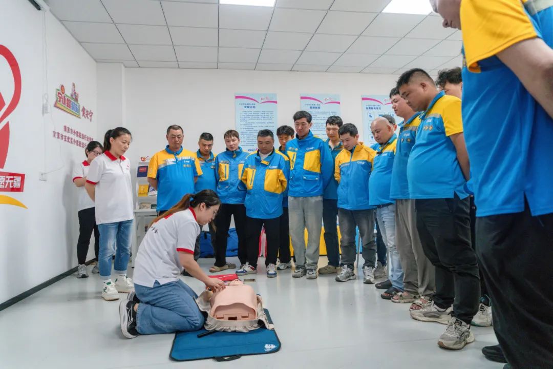 培训突出实战性,涵盖AED使用、心肺复苏术、海姆立克急救法等急救技能。玄武区红十字师资围绕心肺复苏操作规范流程、体外除颤仪使用等重点内容展开教学。骑手们在模拟教具上反复练习胸外按压、人工呼吸等动作要领,确保急救操作规范有效。