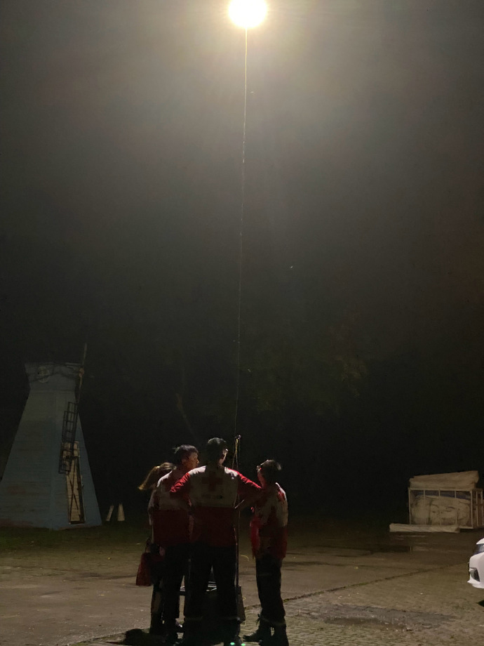 在照明无人机和手电加持下帐篷迅速搭了起来