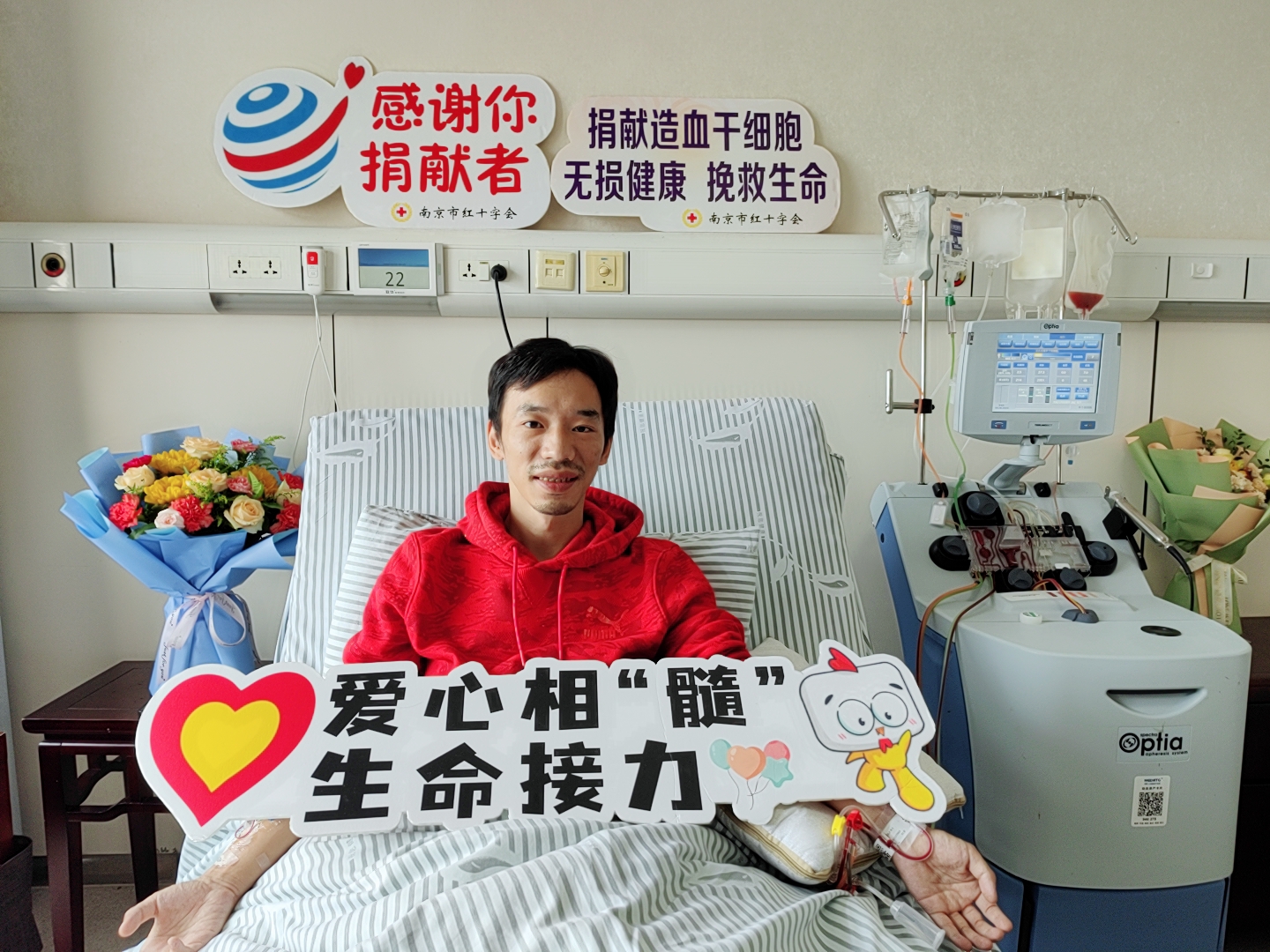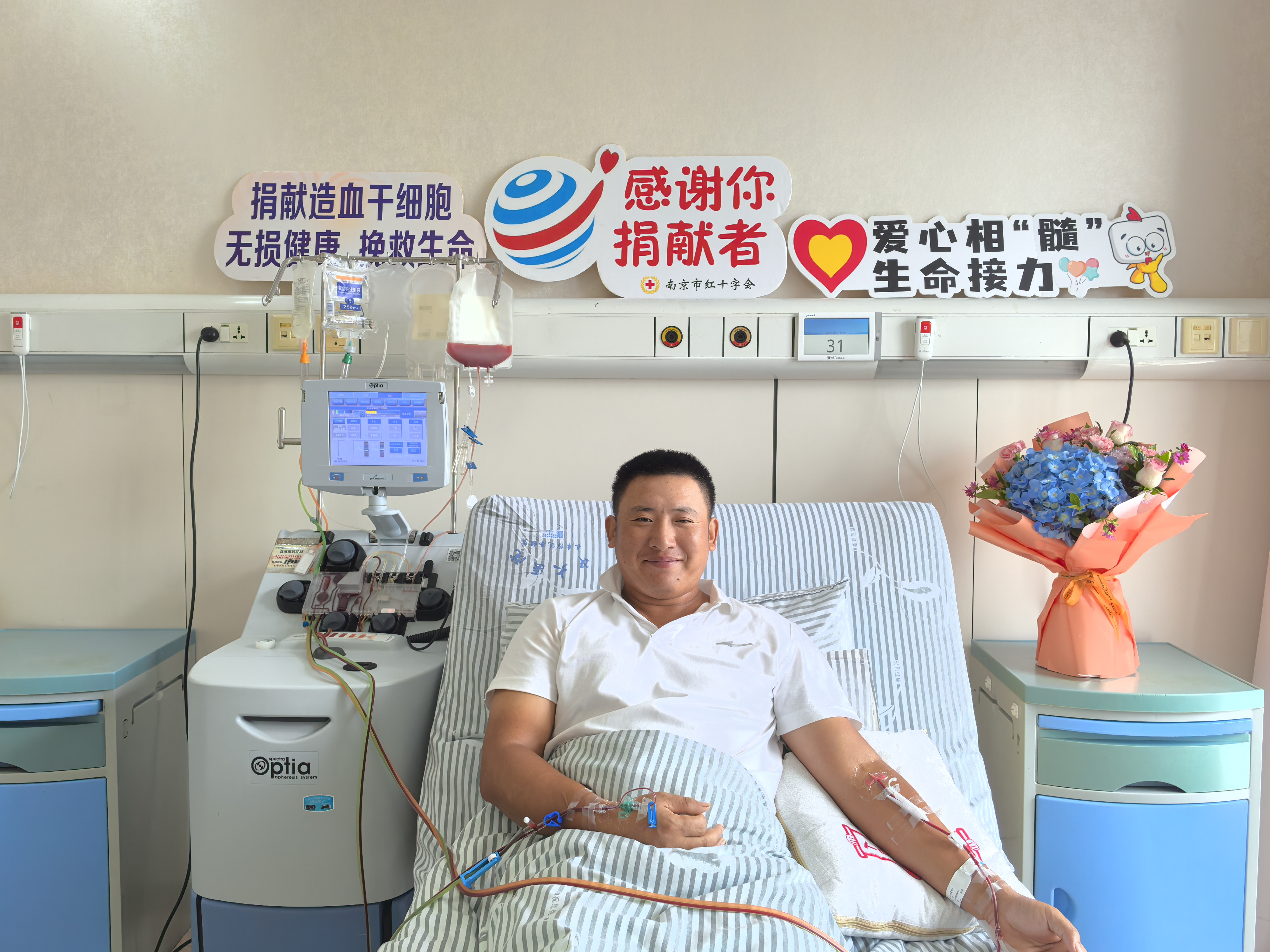 10月29日,蔡先生带着满怀的爱与希望成功完成了捐献,为远方素未谋面的患者送去了生命的火种,成为江苏省第1491位、南京市第209位、六合区第18位造血干细胞捐献者。