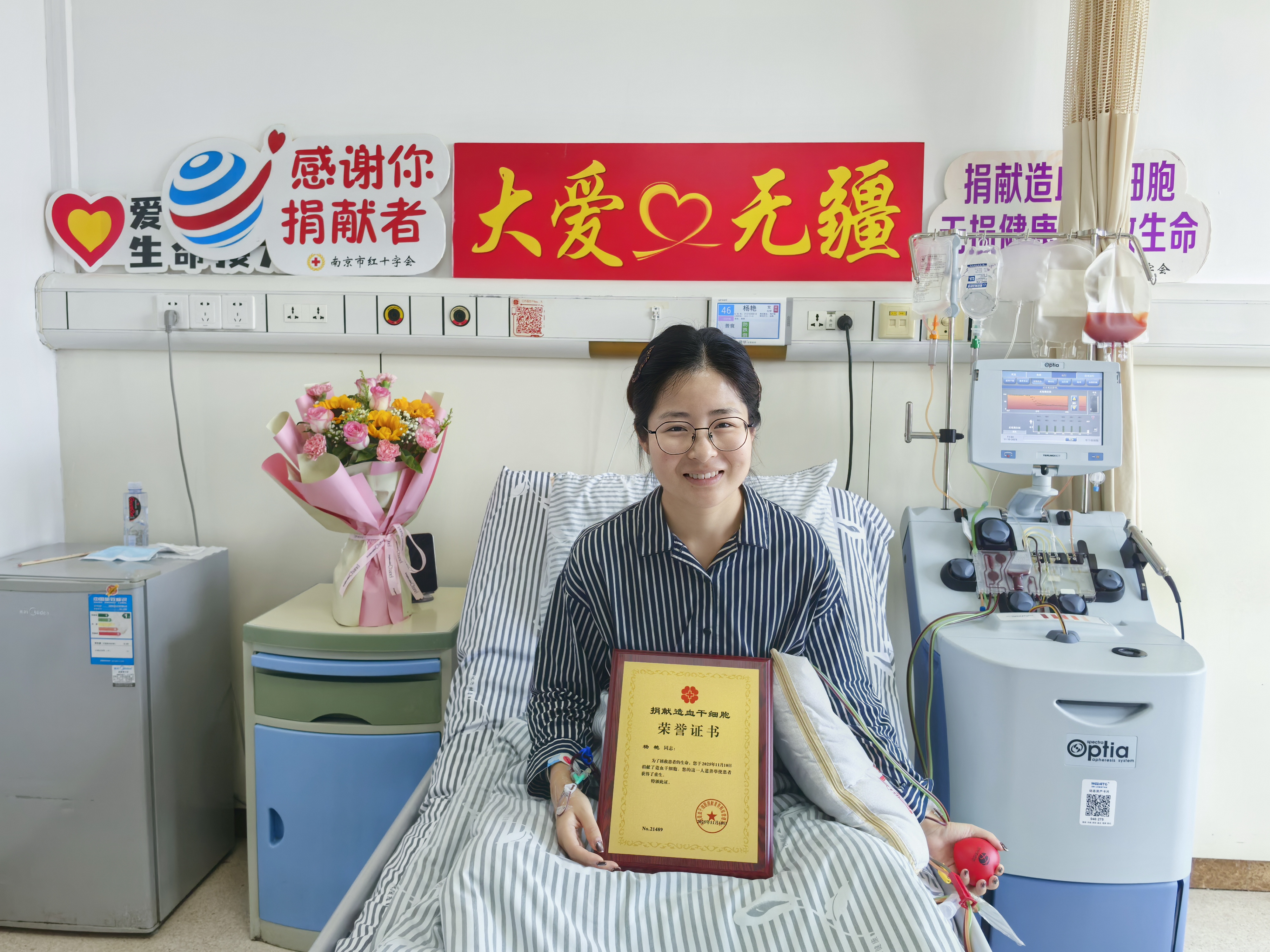 11月10日,东南大学附属中大医院采集室圆满完成了一场跨越国界的“生命接力”。来自江苏南京的爱心志愿者杨艳,在历经四个半小时的外周血干细胞采集后,成功捐献了286毫升造血干细胞混悬液,成为中华骨髓库第21489位、江苏省第1721位、南京市第248位、秦淮区第31位造血干细胞捐献者。